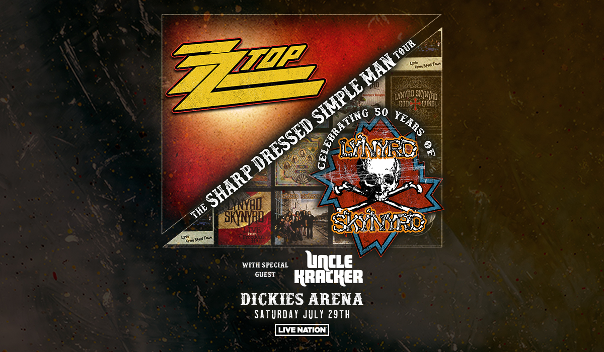 The Titans of American classic rock ZZ Top and Lynyrd Skynyrd announced their first co-headling tour – The Sharp Dressed Simple Man Tour – hitting twenty-two cities in North America this summer including Fort Worth!  The Tour will make it’s stop to Dickies Arena on Saturday, July 29, 2023 with special guest, Uncle Kracker.